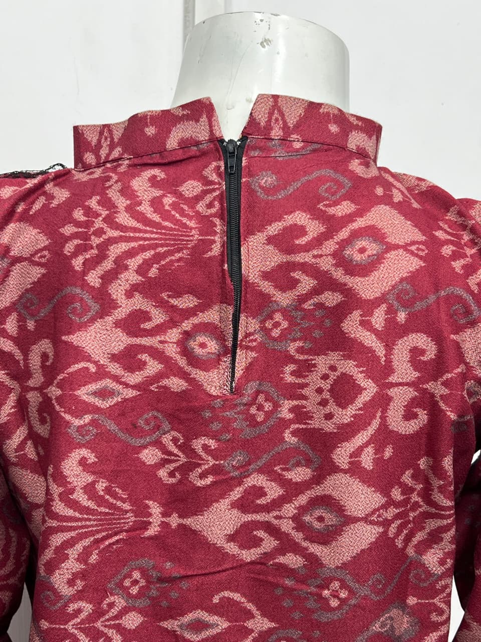 High quality soft lawn fabric se tayar kiya gaya hai jo 🪶 lightweight, 💨 breathable aur ☀️ garmiyon ke liye ideal hai. Shirt ke front par 🔘 stylish button detailing aur 👗 full sleeves ke sath neat cuff style hai. Sath 👖 matching printed trouser milta hai jo complete look deta hai.